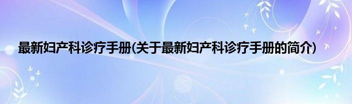 本文关于最新妇产科诊疗手册的简介就讲解完毕,希望对大家有所帮助。