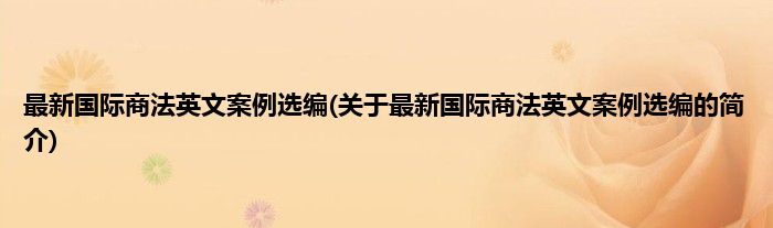 最新国际商法英文案例选编(关于最新国际商法英文案例选编的简介)