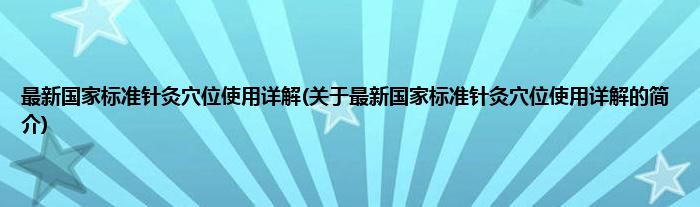 最新国家标准针灸穴位使用详解(关于最新国家标准针灸穴位使用详解的简介)