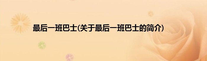 大家好,最后一班巴士,关于最后一班巴士的简介很多人还不知道,现在让我们一起来看看吧!