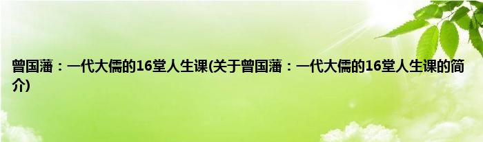 本文关于曾国藩:一代大儒的16堂人生课的简介就讲解完毕,希望对大家有所帮助。