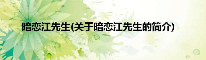 本文关于暗恋江先生的简介就讲解完毕,希望对大家有所帮助。