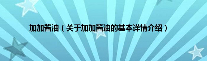 本文关于加加酱油的基本详情介绍就讲解完毕,希望对大家有所帮助。