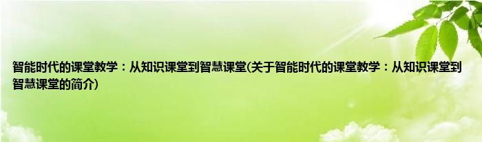智能时代的课堂教学:从知识课堂到智慧课堂(关于智能时代的课堂教学:从知识课堂到智慧课堂的简介)