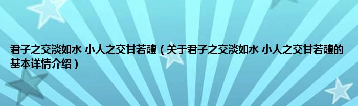 本文关于君子之交淡如水 小人之交甘若醴的基本详情介绍就讲解完毕,希望对大家有所帮助。