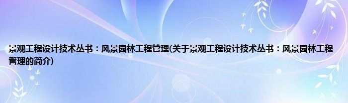本文关于景观工程设计技术丛书:风景园林工程管理的简介就讲解完毕,希望对大家有所帮助。