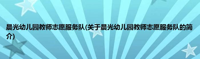 本文关于晨光幼儿园教师志愿服务队的简介就讲解完毕,希望对大家有所帮助。
