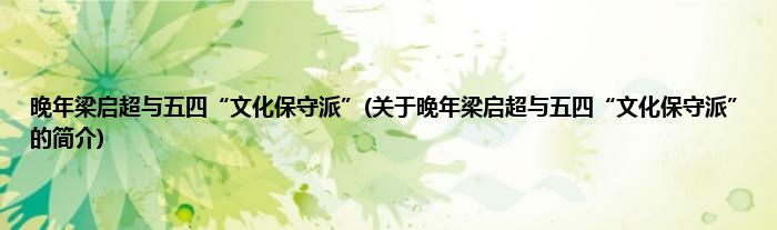 大家好,晚年梁启超与五四“文化保守派”,关于晚年梁启超与五四“文化保守派”的简介很多人还不知道,现在让我们一起来看看吧!