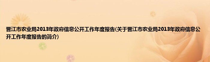 本文关于晋江市农业局2013年政府信息公开工作年度报告的简介就讲解完毕,希望对大家有所帮助。