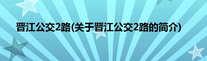 本文关于晋江公交2路的简介就讲解完毕,希望对大家有所帮助。