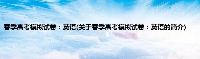 本文关于春季高考模拟试卷:英语的简介就讲解完毕,希望对大家有所帮助。