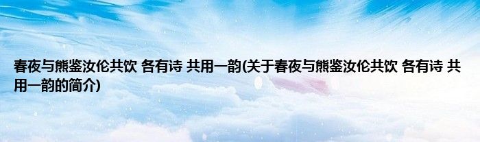 本文关于春夜与熊鉴汝伦共饮,各有诗,共用一韵的简介就讲解完毕,希望对大家有所帮助。