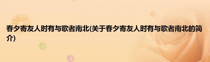 本文关于春夕寄友人时有与歌者南北的简介就讲解完毕,希望对大家有所帮助。