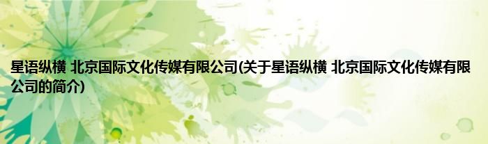 本文关于星语纵横 北京国际文化传媒有限公司的简介就讲解完毕,希望对大家有所帮助。