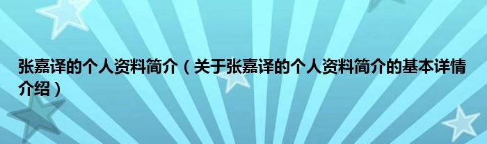 本文关于张嘉译的个人资料简介的基本详情介绍就讲解完毕,希望对大家有所帮助。