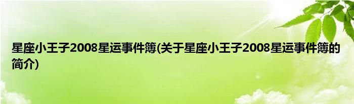 本文关于星座小王子2008星运事件簿的简介就讲解完毕,希望对大家有所帮助。