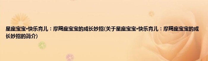 大家好,星座宝宝·快乐育儿:摩羯座宝宝的成长妙招,关于星座宝宝·快乐育儿:摩羯座宝宝的成长妙招的简介很多人还不知道,现在让我们一起来看看吧!