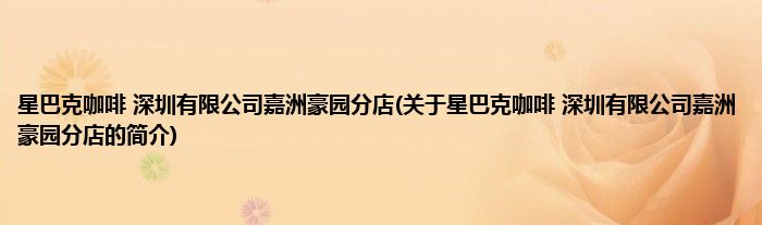 本文关于星巴克咖啡 深圳有限公司嘉洲豪园分店的简介就讲解完毕,希望对大家有所帮助。
