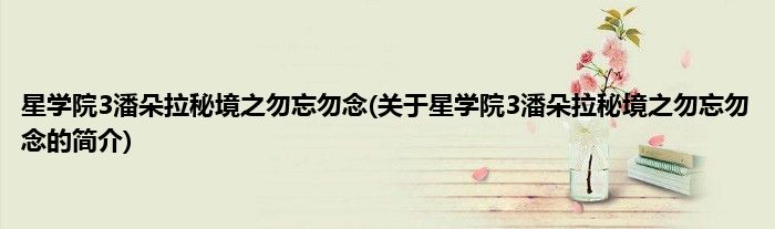 大家好,星学院3潘朵拉秘境之勿忘勿念,关于星学院3潘朵拉秘境之勿忘勿念的简介很多人还不知道,现在让我们一起来看看吧!