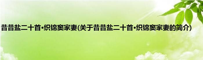 1、 《昔昔盐二十首·织锦窦家妻》是唐代诗人赵嘏所作的一首五言古诗。