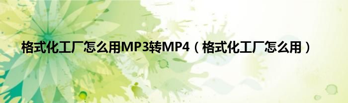 大家好,精选小编来为大家解答以上问题。格式化工厂怎么用MP3转MP4,格式化工厂怎么用很多人还不知道,现在让我们一起来看看吧!