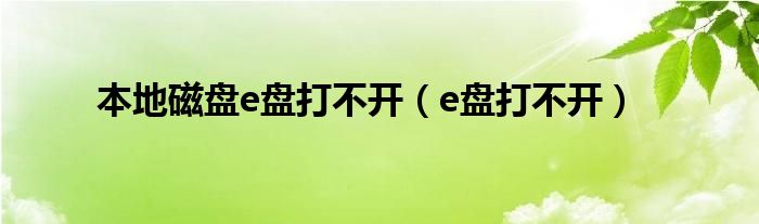 大家好,精选小编来为大家解答以上问题。本地磁盘e盘打不开,e盘打不开很多人还不知道,现在让我们一起来看看吧!