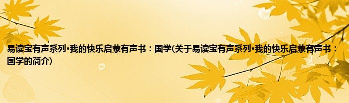 本文关于易读宝有声系列·我的快乐启蒙有声书:国学的简介就讲解完毕,希望对大家有所帮助。