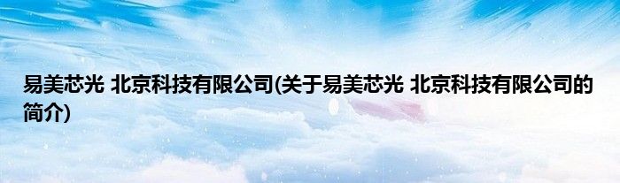 易美芯光北京科技有限公司(关于易美芯光北京科技有限公司的简介)