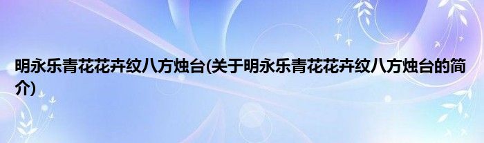 本文关于明永乐青花花卉纹八方烛台的简介就讲解完毕,希望对大家有所帮助。