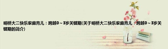 本文关于明桥大二快乐家庭育儿:跨越0~3岁关键期的简介就讲解完毕,希望对大家有所帮助。