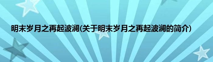 大家好,明末岁月之再起波澜,关于明末岁月之再起波澜的简介很多人还不知道,现在让我们一起来看看吧!