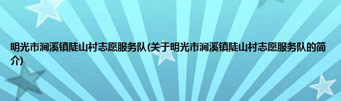本文关于明光市涧溪镇陡山村志愿服务队的简介就讲解完毕,希望对大家有所帮助。