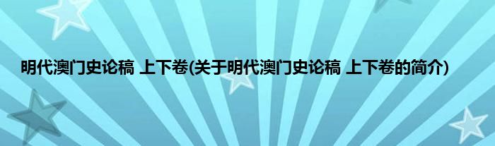 大家好,明代澳门史论稿 上下卷,关于明代澳门史论稿 上下卷的简介很多人还不知道,现在让我们一起来看看吧!