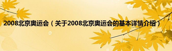 本文关于2008北京奥运会的基本详情介绍就讲解完毕,希望对大家有所帮助。