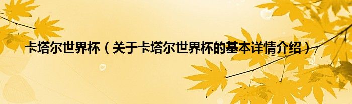 本文关于卡塔尔世界杯的基本详情介绍就讲解完毕,希望对大家有所帮助。