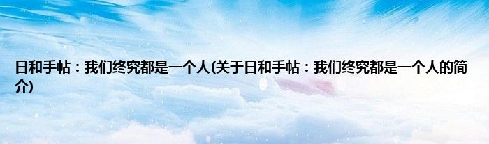 本文关于日和手帖:我们终究都是一个人的简介就讲解完毕,希望对大家有所帮助。