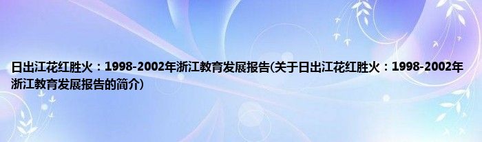 本文关于日出江花红胜火:1998-2002年浙江教育发展报告的简介就讲解完毕,希望对大家有所帮助。
