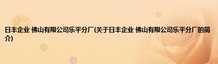 本文关于日丰企业 佛山有限公司乐平分厂的简介就讲解完毕,希望对大家有所帮助。