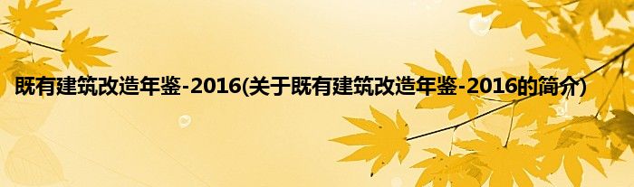 1、 《既有建筑改造年鉴-2016》是2017年中国建筑工业出版社出版的图书。