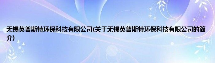 大家好,无锡英普斯特环保科技有限公司,关于无锡英普斯特环保科技有限公司的简介很多人还不知道,现在让我们一起来看看吧!