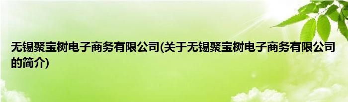 本文关于无锡聚宝树电子商务有限公司的简介就讲解完毕,希望对大家有所帮助。