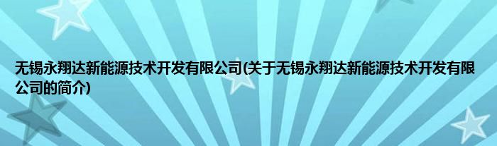 本文关于无锡永翔达新能源技术开发有限公司的简介就讲解完毕,希望对大家有所帮助。