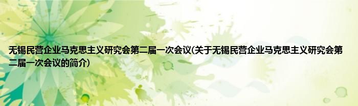 本文关于无锡民营企业马克思主义研究会第二届一次会议的简介就讲解完毕,希望对大家有所帮助。