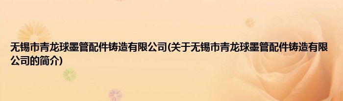 本文关于无锡市青龙球墨管配件铸造有限公司的简介就讲解完毕,希望对大家有所帮助。