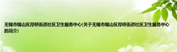 本文关于无锡市锡山区厚桥街道社区卫生服务中心的简介就讲解完毕,希望对大家有所帮助。