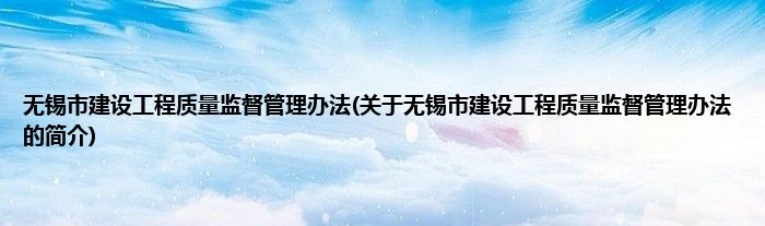 大家好,无锡市建设工程质量监督管理办法,关于无锡市建设工程质量监督管理办法的简介很多人还不知道,现在让我们一起来看看吧!