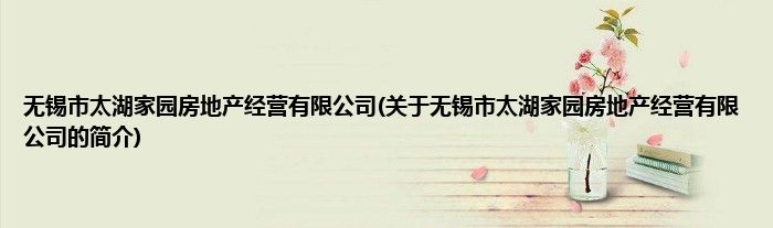 大家好,无锡市太湖家园房地产经营有限公司,关于无锡市太湖家园房地产经营有限公司的简介很多人还不知道,现在让我们一起来看看吧!