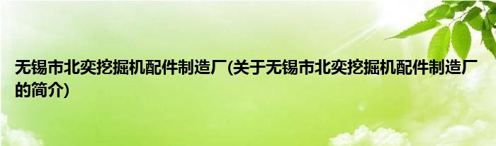 本文关于无锡市北奕挖掘机配件制造厂的简介就讲解完毕,希望对大家有所帮助。