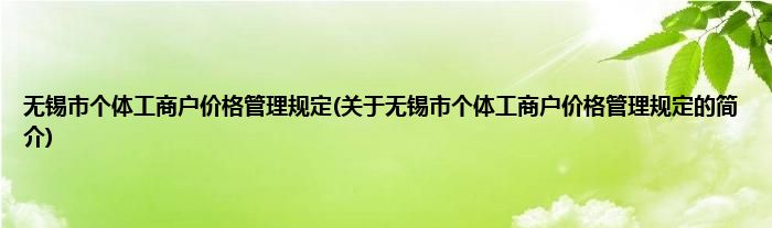 本文关于无锡市个体工商户价格管理规定的简介就讲解完毕,希望对大家有所帮助。