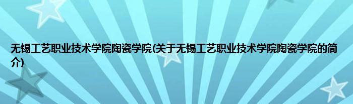 1、 无锡工艺职业技术学院陶瓷学院是无锡工艺职业技术学院二级学院。